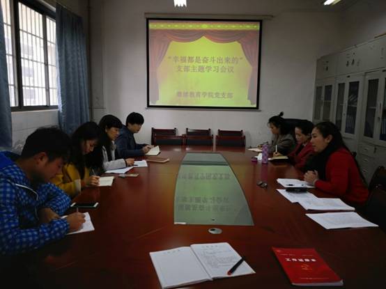 2月26日上午, 2018年开学第一天,继续教育学院党支部为做好新学期的党建开篇工作,不忘初心、牢记使命,增强全体党员职工的责任心和使命感,在部门会议室举行了书记讲党课:《幸福都是奋斗出来的》的主题党日活动。