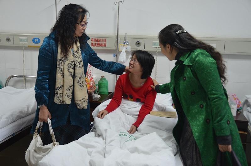 在医院,李克勤副校长详细询问了刘维维学员的身体状况和恢复情况,鼓励他要树立战胜疾病的信心,安心养病,并祝愿他早日康复。李克勤同时表示,关心每一位来湖南一师参加培训的学员,特别是遇到困难的学员是学校应尽的责任,他要求学校国培办要尽力帮助她解决实际困难。李克勤还代表学校向患病学员送去了水果、牛奶等营养品和慰问金。刘维维感谢学校领导的关怀,表示一定积极配合治疗,早日康复出院。