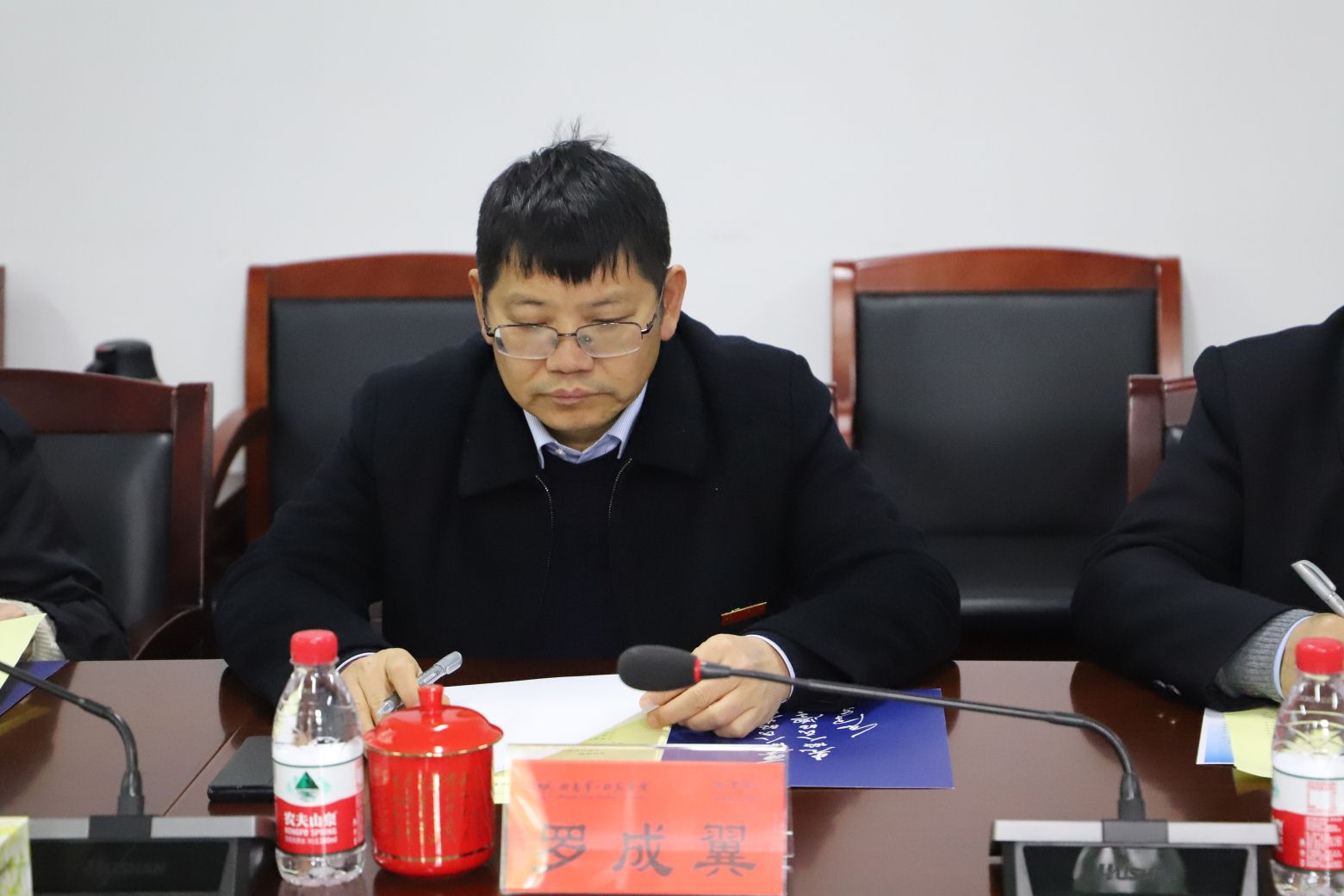 参观青年毛泽东纪念馆后,双方在前楼会议室举行了座谈会。主持人周发明首先对林英一行的到来表示欢迎,然后围绕“底蕴、底色、底气”简要介绍了我校基本情况。