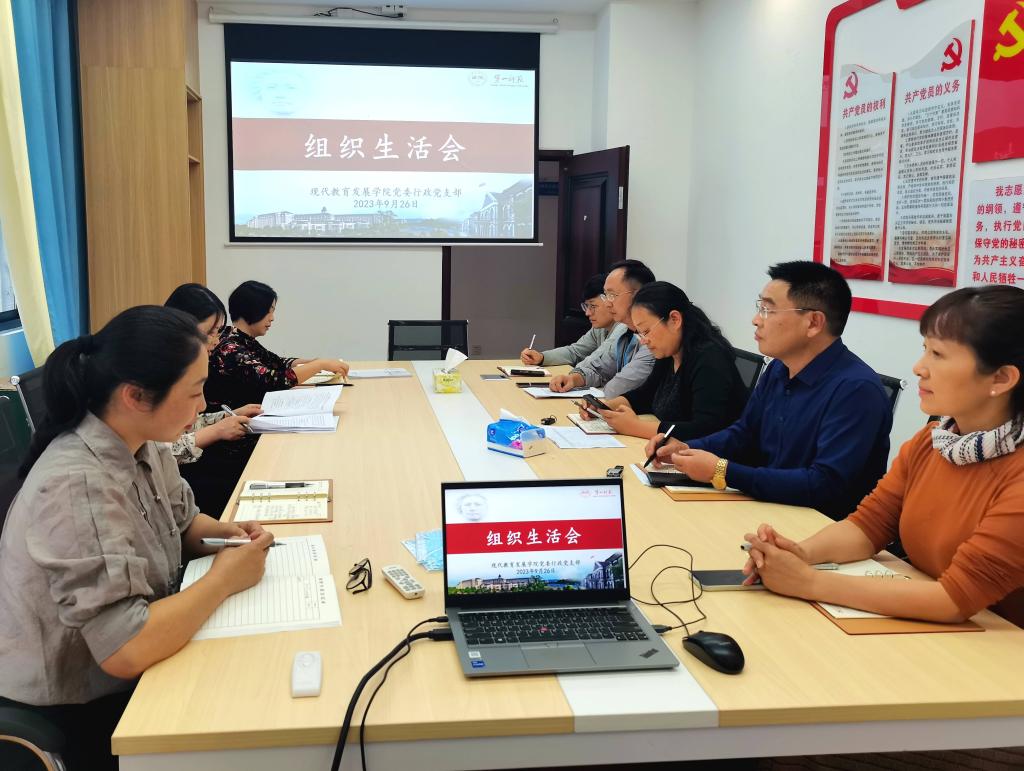 2023年9月26日中午,现代教育发展学院党委行政党支部在培训公寓北栋105会议室召开2023年度组织生活会。现代教育发展学院党委书记祝娅同志、副院长张俭明同志、副院长李辉华同志及支部全体党员同志参加了会议。组织生活会由支部书记徐卫良同志主持。