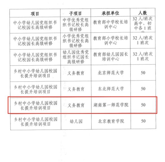 近日,教育部印发《关于组织实施 2025 年“国培计划”示范培训的通知》(教师司函〔2025〕17 号),公布 2025 年 “国培计划”示范培训项目承担单位名单,我校成功入选中小学校长示范培训项目承办单位,项目首席专家由现代教育发展学院院长钟佩君教授担任。2025年教育部 “国培计划” 示范培训项目仅30个,由24家单位承担实施。