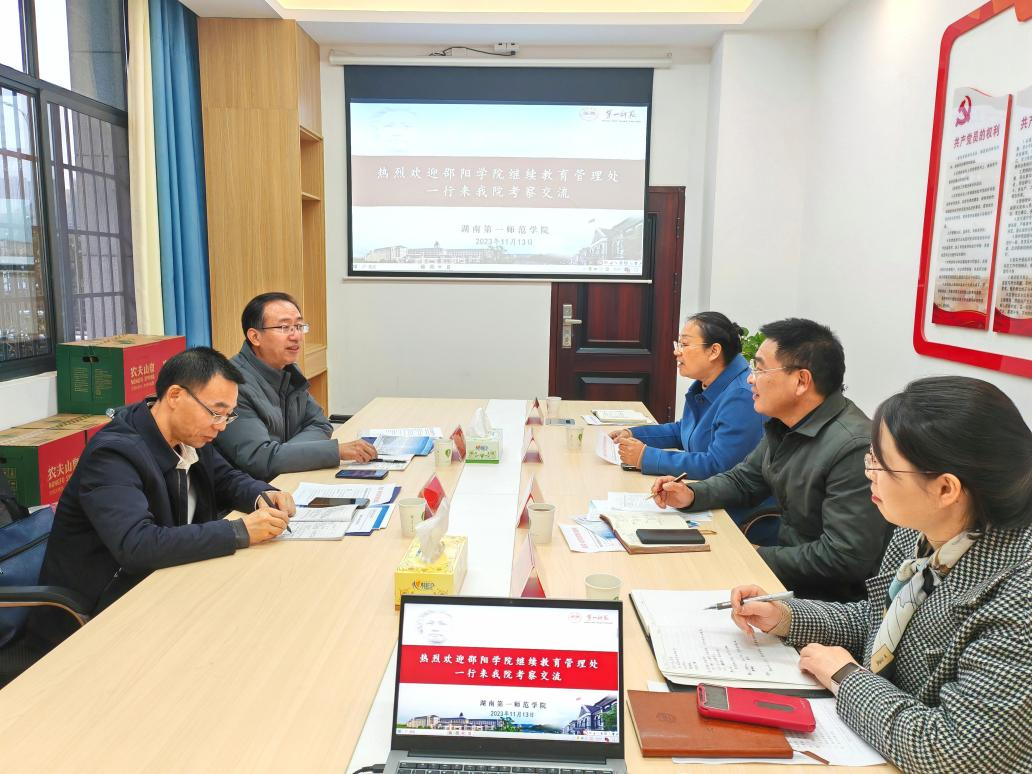 2023年11月13日下午,邵阳学院继续教育管理处副处长刘运喜及自考办主任张伟一行来我院进行自考助学工作调研交流,我院负责人祝娅、张俭明及相关科室人员热情接到了来访团队。