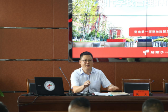 不同的地区,不同的学校,却有着共同的教育梦想,教育理念在这里融合,思想在这里碰撞,灵感也在这里迸发。黄义校长以《现代学校管理的行与思》为题为大家做了培训,介绍了学校文化和学校特色;强调了现代学校管理的核心是以人为本;提出了建共同愿景、扬高尚人格、借他山之石、全制度规范、搭展示舞台、倡激励评价的目标。建幸福的校园、创幸福的团队、做幸福的自己。