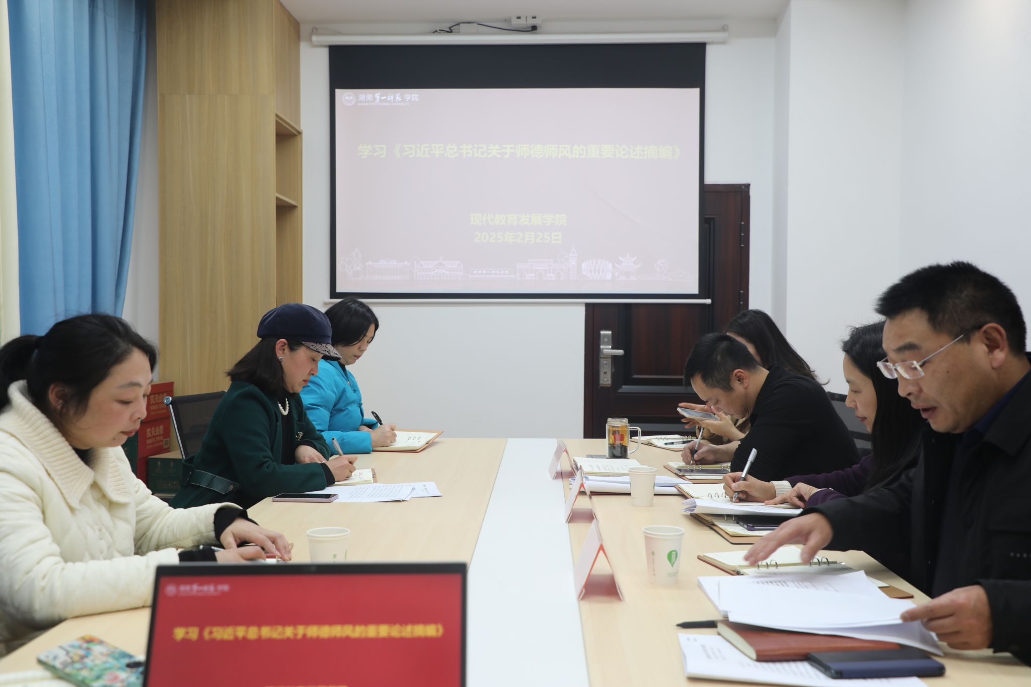为全面贯彻党的教育方针,落实立德树人根本任务,进一步强化教师队伍职业道德建设,2月26日,现代教育发展学院组织学院全体教职工开展师德师风专题学习活动。活动由现代教育发展学院院长钟佩君主持。