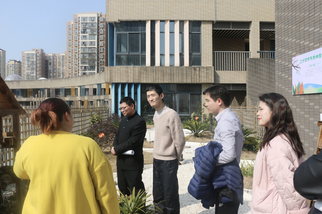 金桥小学的杨志强副校长引导四位老师参观了校园的各个多功能教室:木工教室、版画教室、创客教室、阅览室、屋顶农场......各学科教研组长就学科特色课程的建设与一师的老师们进行了交流。金桥小学的赵华校长从学校发展、文化建设、课程研发、教育科研等方面与挂职教师进行了分享,并提出了具体的工作期望。