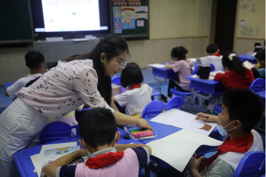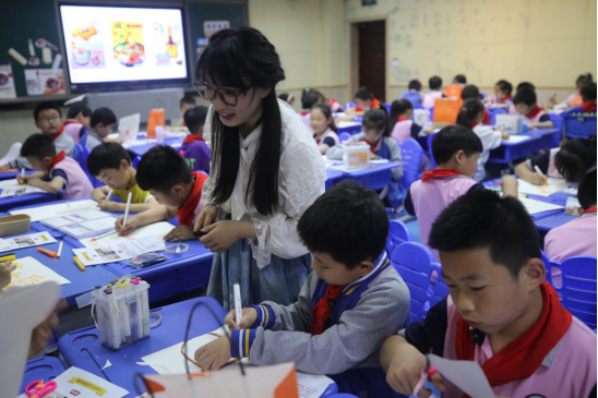 第三节课是由彭子欣老师执教的《海报宣传设计》。彭老师通过美食的实物品尝导入,大大激发了孩子们的上课热情,孩子们通过美食背后的故事,了解了靖港传统美食的历史以及劳动人民的勤劳与智慧。接着彭老师通过对比海报的方法,引导学生探究海报的组成形式。在完成美食宣传海报的设计环节,孩子们用“靖港香干”贴纸带着美食和传统文化的浓香呈现于课堂之上。彭老师教态自然,亲切有趣,教具精美,授课时间把控到位,课堂结构层次分明,指导步骤清晰,同学们的课堂参与度高,课堂表现十分精彩。