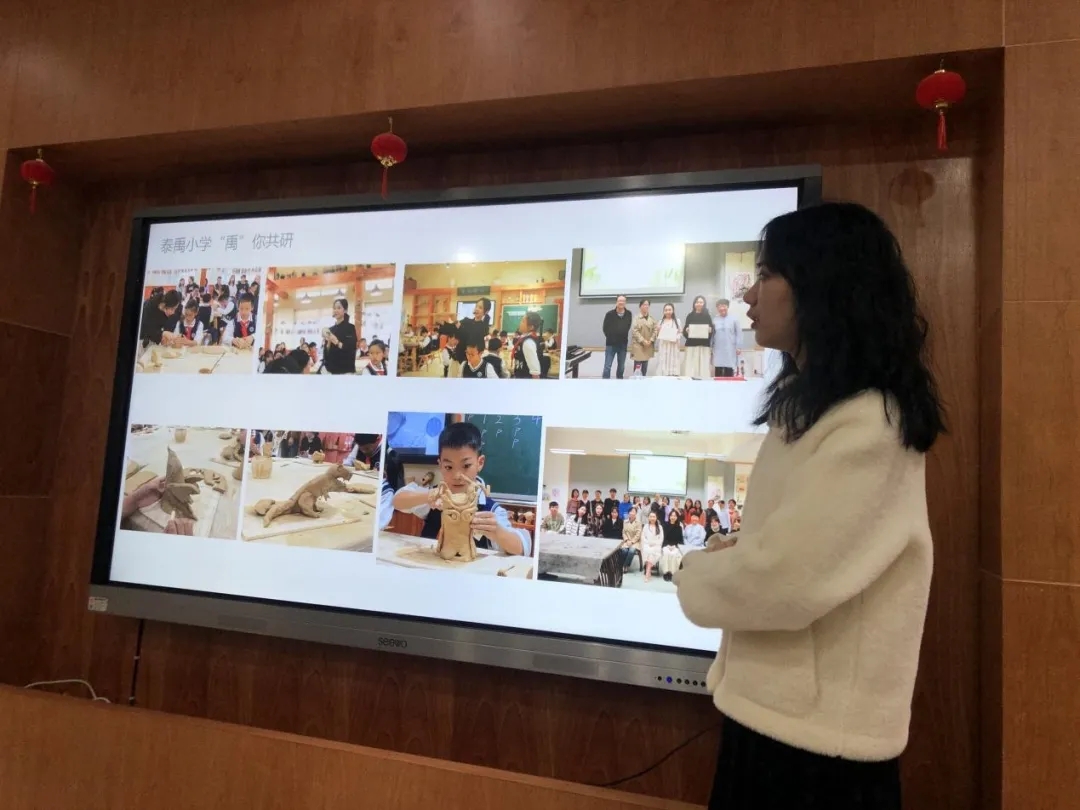 会议伊始,斑马湖小学校长潘勇对建校三年多来学校的美术教育教学成果以及未来美育特色发展做了介绍,美术学科组长杨欢老师向专家们阐述了学校开展陶艺特色的初步设想,接着美术组专职陶艺老师付佳琳就近一年来斑小陶艺课堂教学情况和师生作品进行了汇报展示。