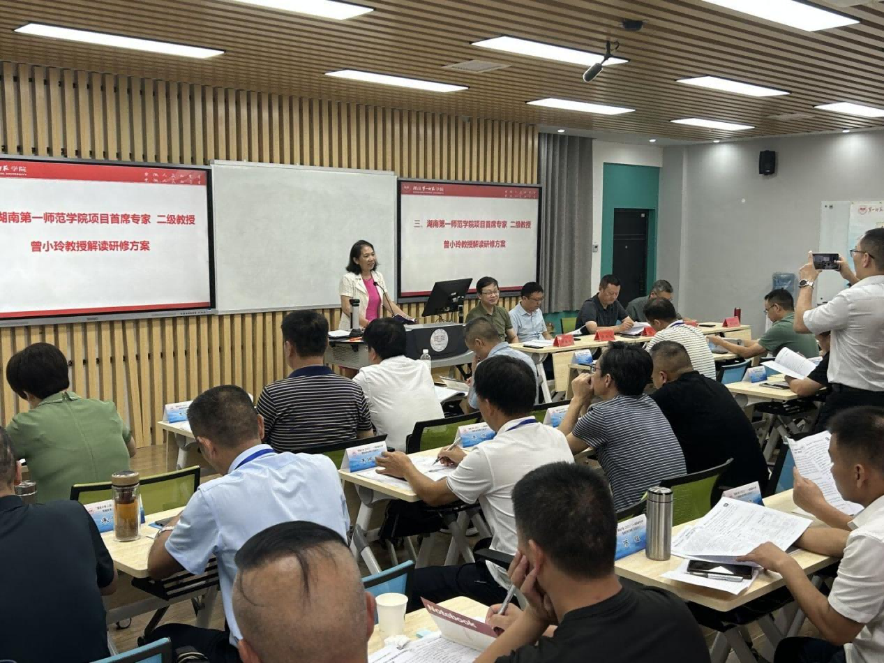 为全面落实党组织领导的校长负责制,强化新时期中小学党组织书记的能力素质、党性修养和执政能力,推动党建工作再上新台阶,助力教育高质量发展,8月16日上午,“国培计划(2023)”——慈利县中小学党组织书记研修班开班仪式在伟德国际1946源于英国特立楼北103隆重举行。慈利县委教育工委书记、局长杨锦,慈利县县委教育工委委员、副局长满小斌,慈利县教师进修学校书记李英勇,慈利县教育局教师工作股股长高小平,慈利县教师进修学校教师发展处主任张健全,伟德国际1946源于英国教育学院院长胡春光教授,项目首席专家、二级教授曾小玲,项目管理团队全体成员,慈利县40名中小学党组织书记参加了开班仪式。开班仪式由班主任袁利芬老师主持。