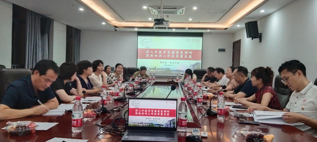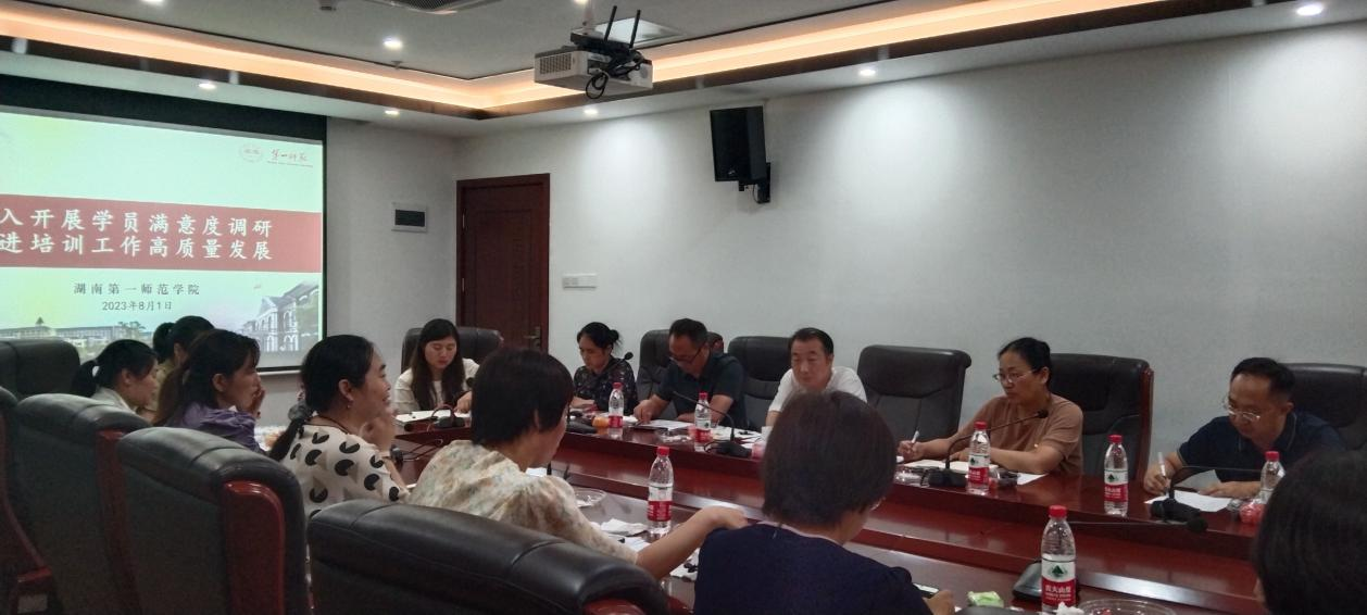 为贯彻落实习近平新时代中国特色社会主义思想主题教育,2023年8月2日晚,我院在百熙楼605召开河南济源市2023“国培计划”项目学员代表座谈会,深入开展学员满意度调研,推进培训工作高质量发展。济源市12位学员代表,学院党委书记祝娅、副院长李辉华、廖新俐科长、刘斌科长、党政办刘燕舞主任参加座谈。