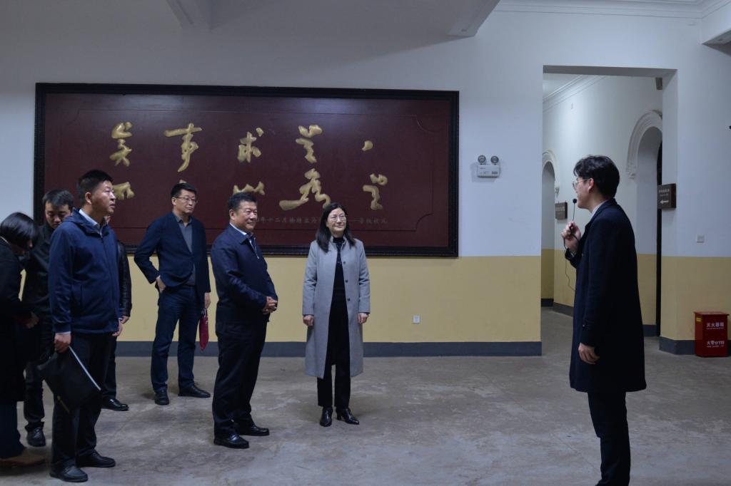 蒋蓉代表一师对杨宝文一行的到来表示热烈欢迎。并陪同杨宝文一行参观了学校旧址大礼堂、第八班教室、城南古井等纪念点和“一代伟人从这里起步”主题陈列展厅,了解毛泽东同志青年时期在我校求学、工作和从事早期革命活动的八年经历与光辉事迹,了解我校的发展历程、人才培养、红色旅游和红色文化传承保护等情况。