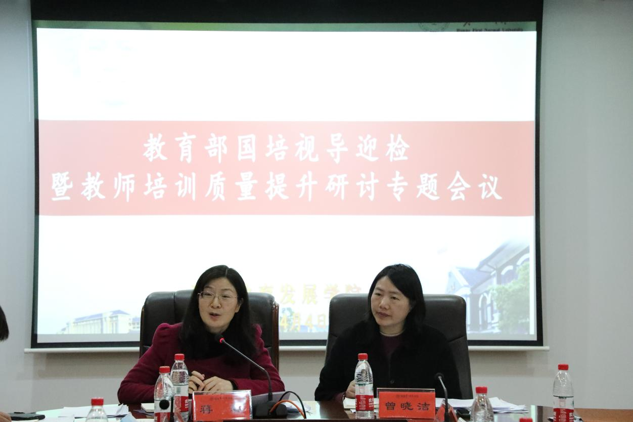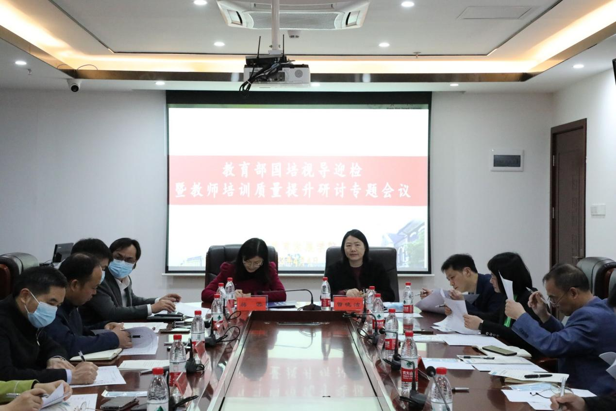 4月4日上午,我院在东方红校区百熙楼605会议室召开2023年教育部国培视导迎检暨教师培训质量提升研讨专题会议。校党委委员、副校长蒋蓉,各二级学院分管教师培训工作领导、首席专家及管理团队,校国培办主任及相关工作人员参加会议,会议由培训二科科长廖新俐主持。