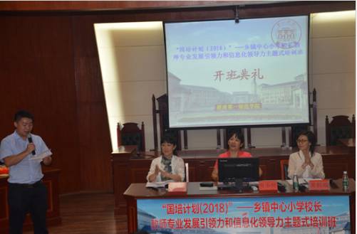 9月12日上午,“国培计划(2018)”乡镇中心小学校长教师专业发展引领力和信息化领导力主题式培训班开班典礼在特立楼南栋112教室举行。来自我省娄底市、郴州市的70名乡镇中心小学校长将在这里进行为期9天的培训。继续教育学院院长曾小玲、副院长黄朝霞出席开班典礼。