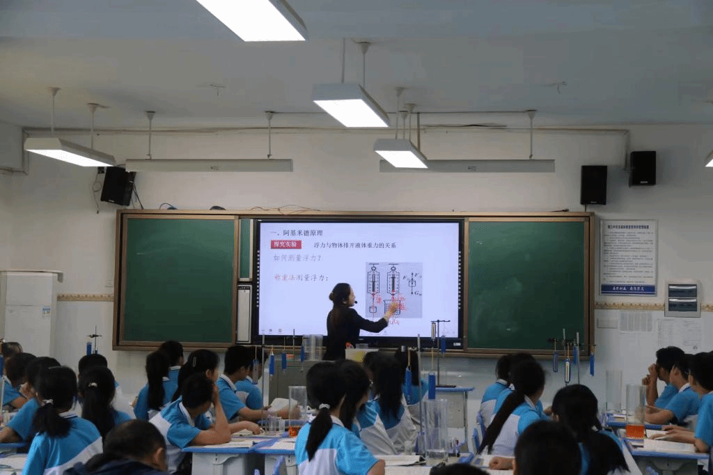在锦江中学格物楼三楼多媒体教室,锦江中学的梁秀芳老师和雅礼实验中学的文姣老师以《阿基米德定理》为授课内容,进行了同课异构,参加活动的教师进行互动交流,我校物理与化学学院艾振宙老师为两位老师的示范课进行了点评。