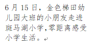一路繁花似锦,一路阳光明媚。斑小体验之旅在一片欢声笑语中完美结束。通过此次体验活动,孩子们亲眼观察、亲耳聆听、亲身体验,对即将踏入的小学有了初步了解,近距离感受到了小学校园生活的无限魅力,相信不久的将来,他们一定能迈着自信、从容的步伐,走进小学,开始新的生活。