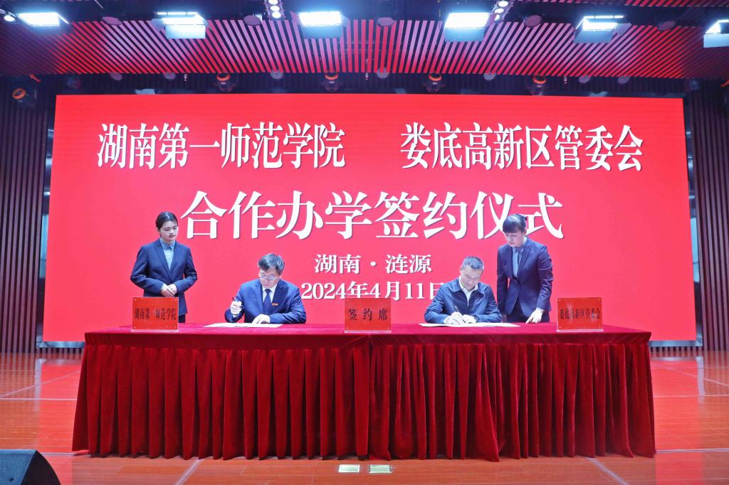 4月11日上午,我校与娄底高新区管委会就合作举办娄底高新区小学在涟源市涟商总部举行合作办学签约仪式。校党委副书记、校长胡穗,校党委委员、副校长蒋蓉,涟源市委副书记、市长兼娄底高新区党工委书记邓伟谋出席签约仪式。